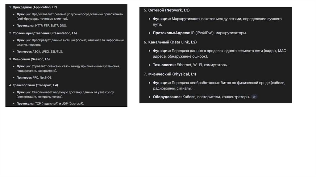 сетевые функции на семь уровней: прикладной, уровень