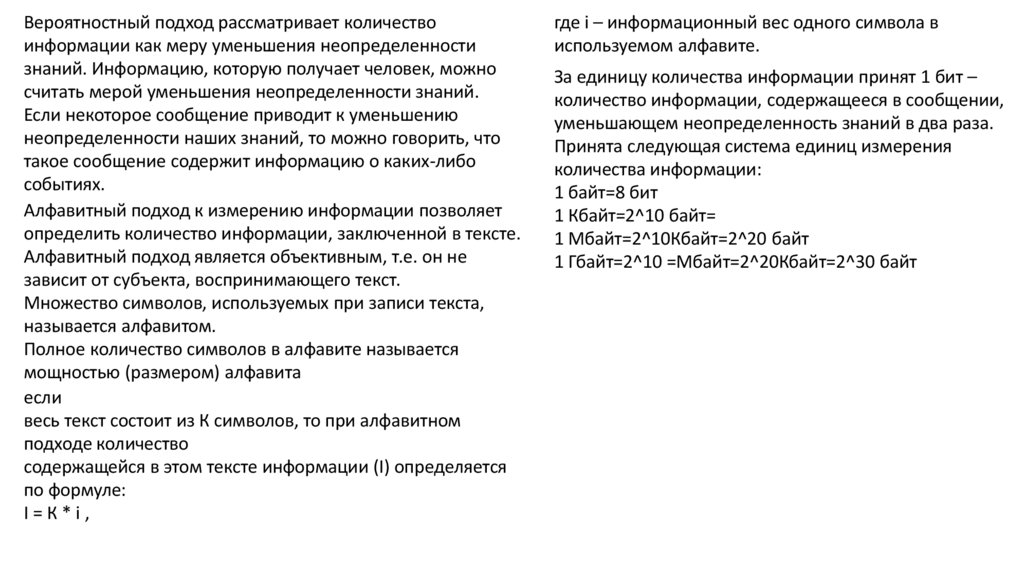 Вероятностный подход рассматривает количествоинформации как меру уменьшения неопределенности