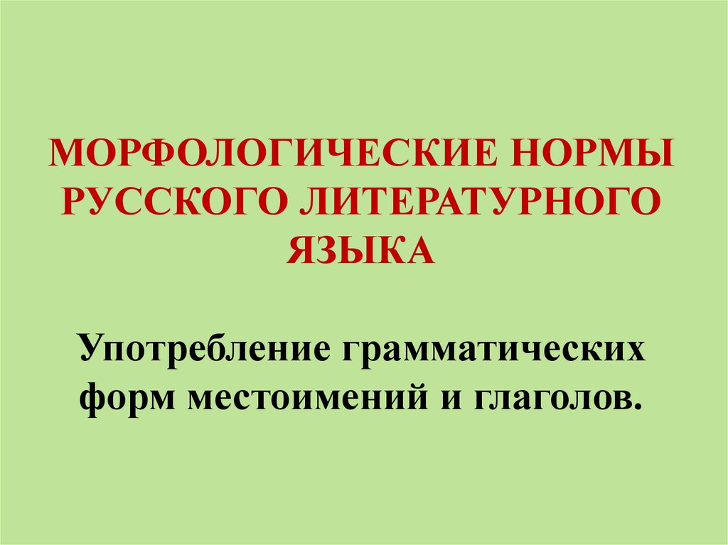 1. МОРФОЛОГИЧЕСКИЕ НОРМЫ РУССКОГО ЛИТЕРАТУРНОГО ЯЗЫКА Употребление грамматических форм местоимений и глаголов.