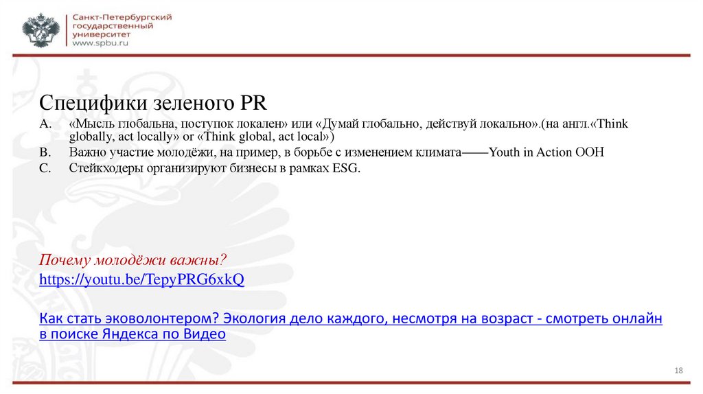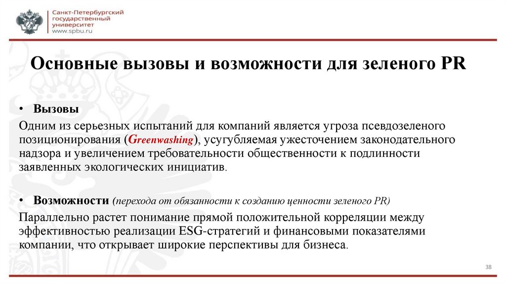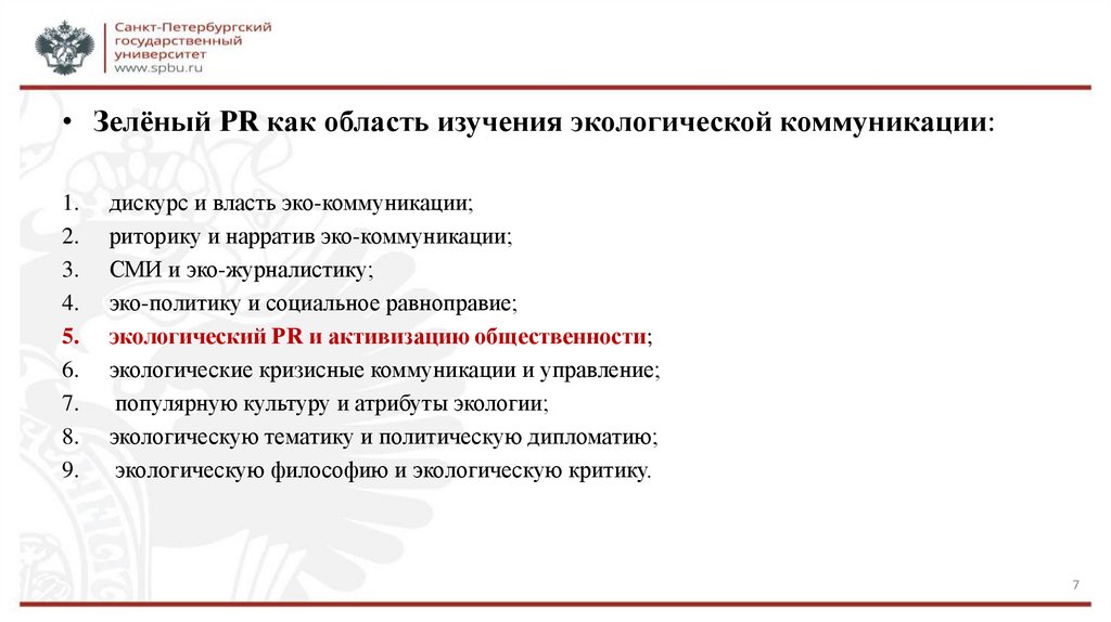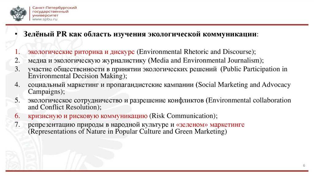 • Зелёный PR как область изучения экологической коммуникации:1.