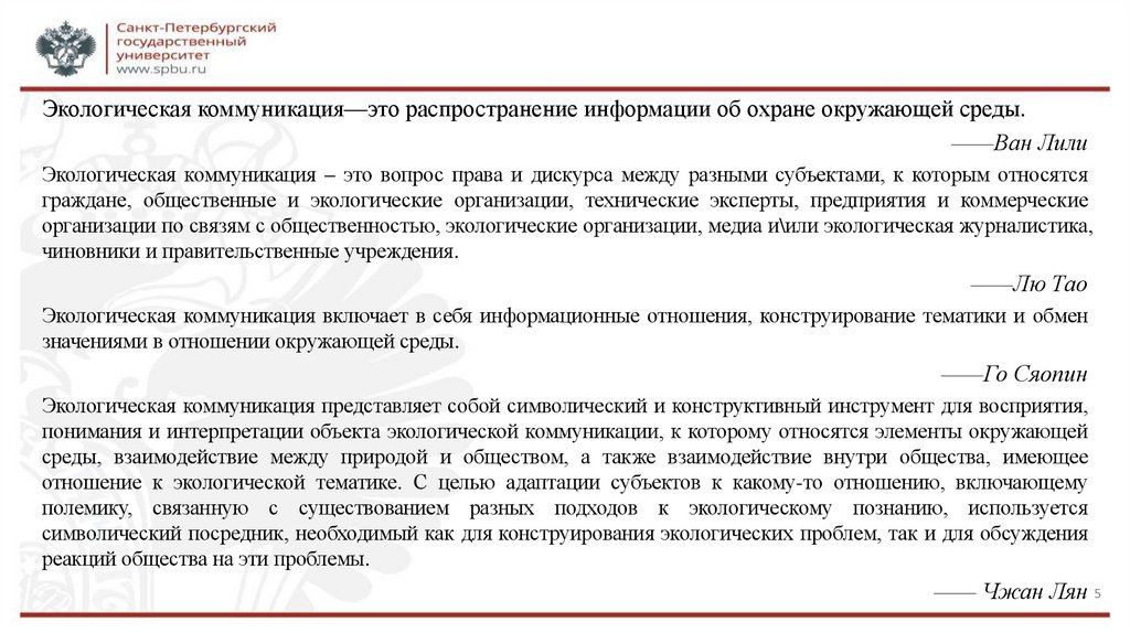 понимания и интерпретации объекта экологической коммуникации, к которому относятся элементы окружающей