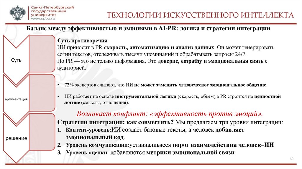 ТЕХНОЛОГИИ ИСКУССТВЕННОГО ИНТЕЛЛЕКТАБаланс между эффективностью и эмоциями в AI-PR: логика и стратегии интеграции