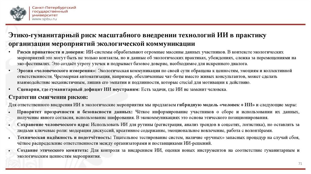 Этико-гуманитарный риск масштабного внедрении технологий ИИ в практикуорганизации мероприятий экологической коммуникации