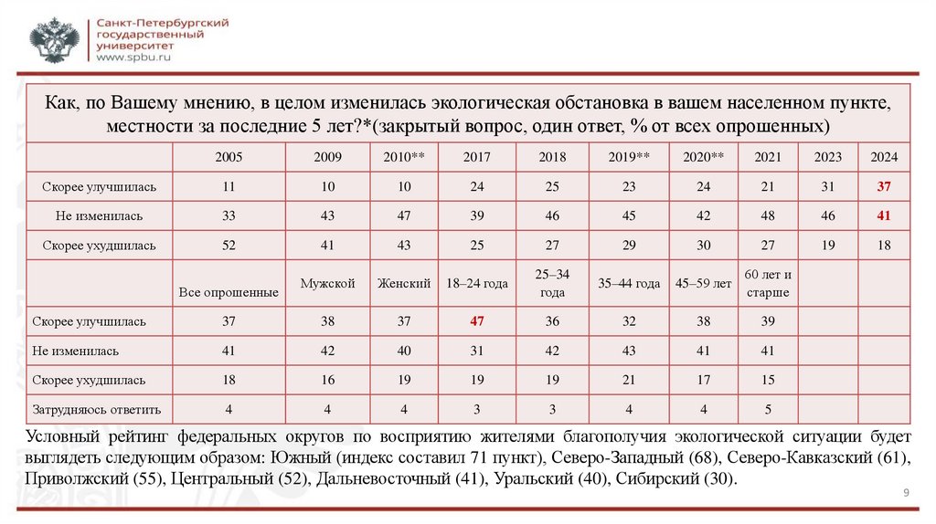 Как, по Вашему мнению, в целом изменилась экологическая обстановка в вашем населенном пункте,местности за последние 5 лет?*(закрытый вопрос, один ответ, % от всех опрошенных)
