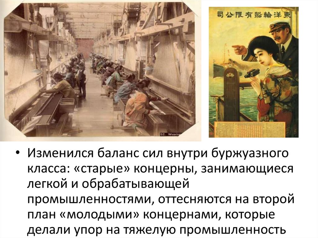 • Изменился баланс сил внутри буржуазногокласса: «старые» концерны, занимающиеся