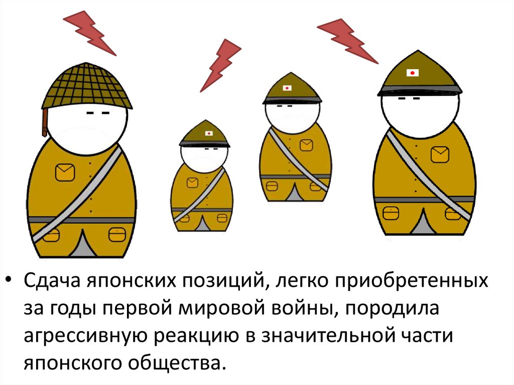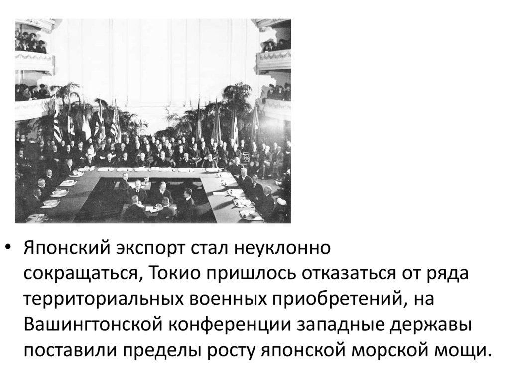 • Сдача японских позиций, легко приобретенныхза годы первой мировой войны, породила