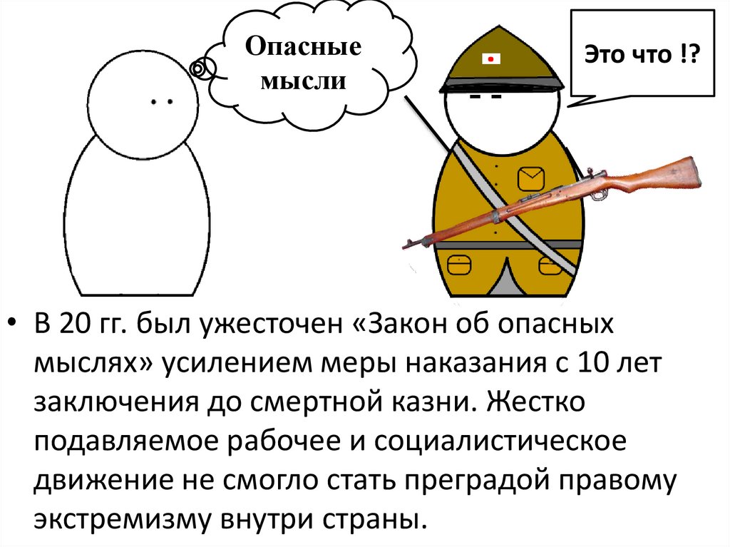 • В 20 гг. был ужесточен «Закон об опасных