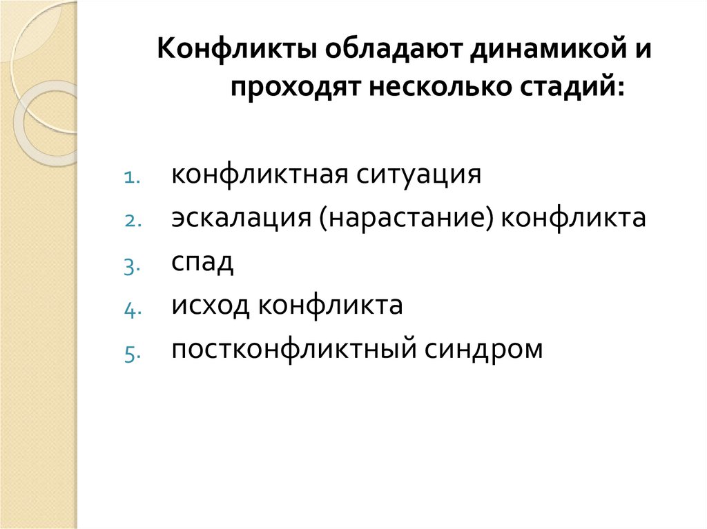 Конфликты обладают динамикой ипроходят несколько стадий: