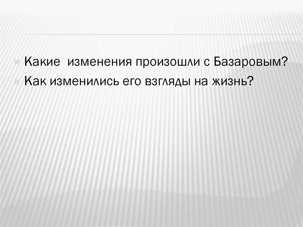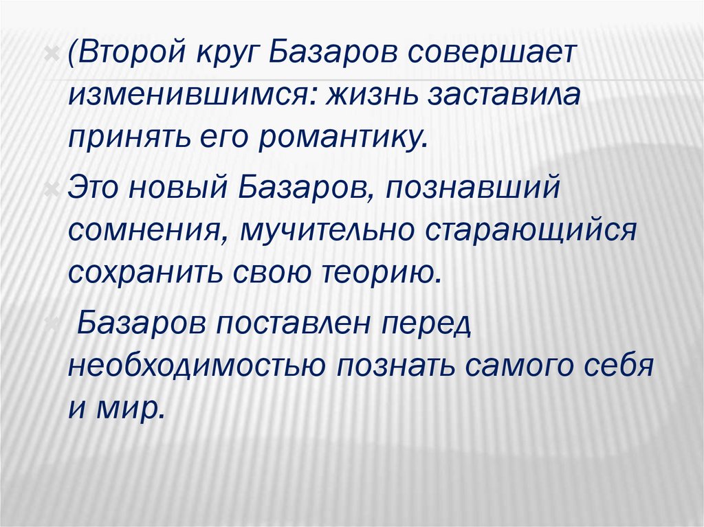 (Второй круг Базаров совершаетизменившимся: жизнь заставила
