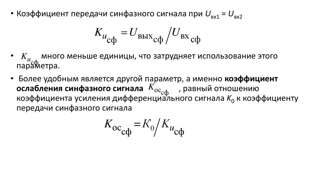 • Коэффициент передачи синфазного сигнала при Uвх1 = Uвх2Ku