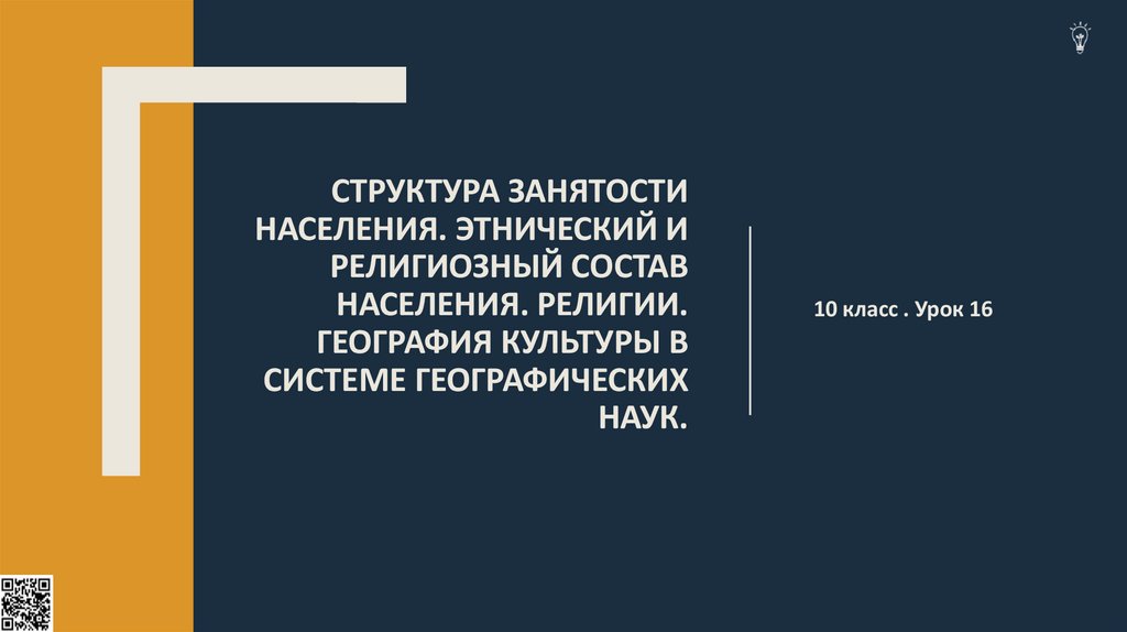 1. Структура занятости населения. Этнический и религиозный состав населения. Религии. География культуры в системе географических