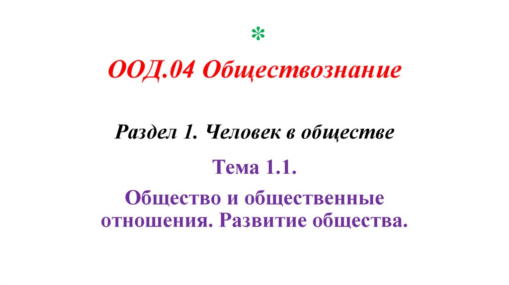 1. * ООД.04 Обществознание Раздел 1. Человек в обществе