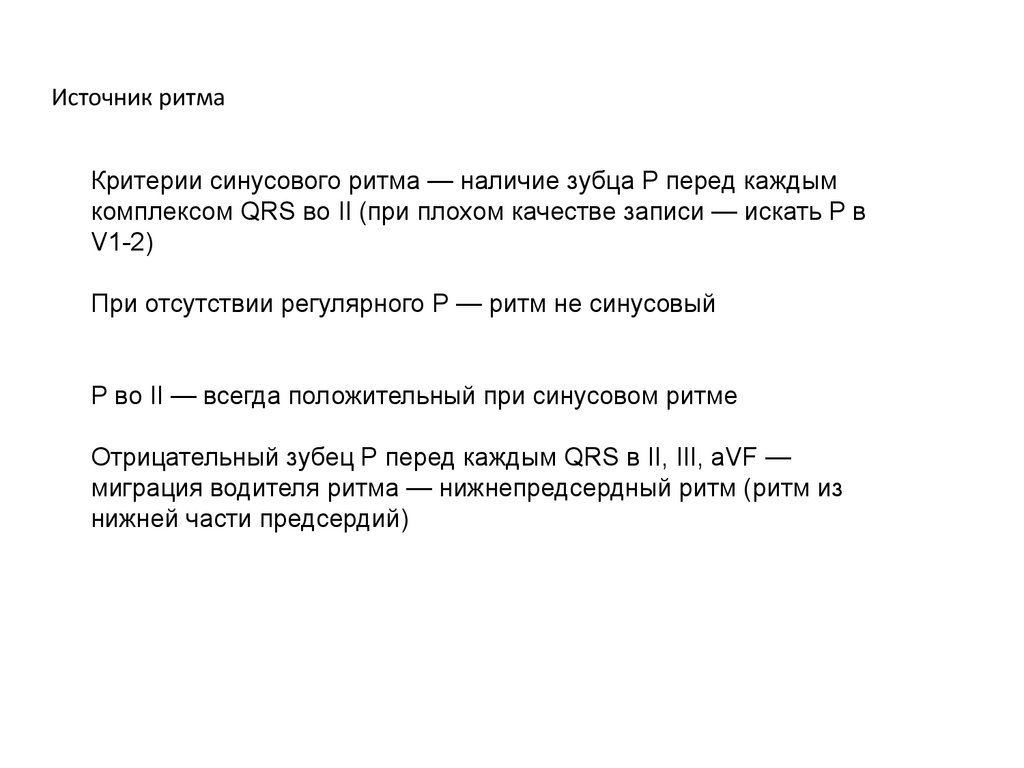 Источник ритмаКритерии синусового ритма — наличие зубца P перед каждым