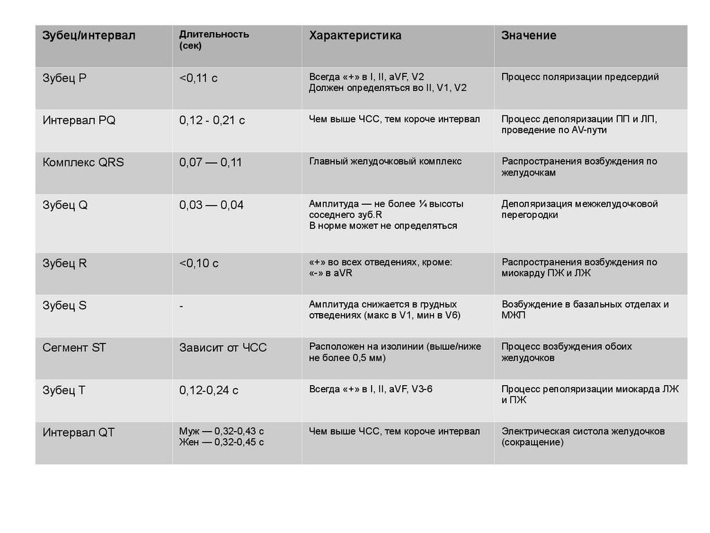 длительности зубцов и интервалов.