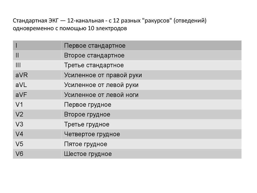 Стандартная ЭКГ — 12-канальная - с 12 разных "ракурсов" (отведений)одновременно с помощью 10 электродов