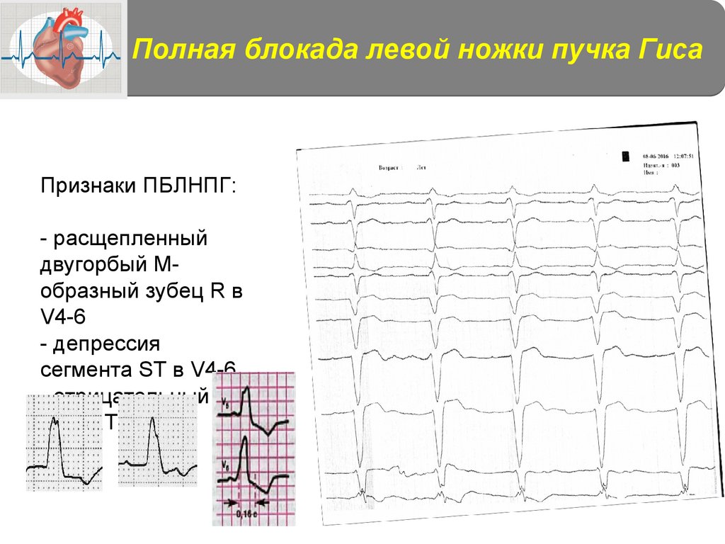 Полная блокада левой ножки пучка ГисаПризнаки ПБЛНПГ: