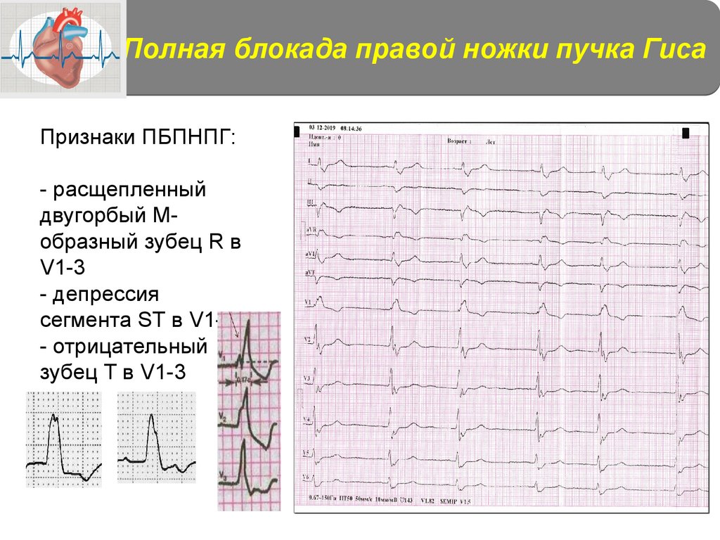 Полная блокада правой ножки пучка ГисаПризнаки ПБПНПГ: