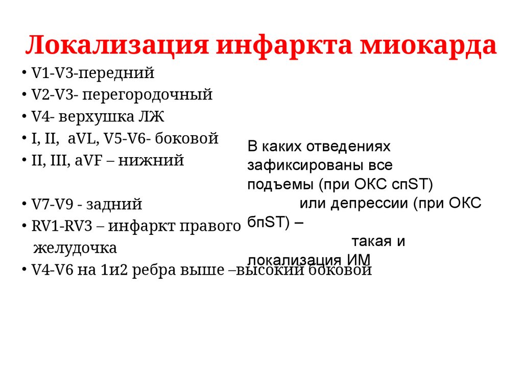 Локализация инфаркта миокарда• V1-V3-передний