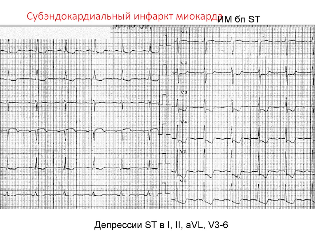 Субэндокардиальный инфаркт миокардаИМ бп STДепрессии ST в I, II, aVL, V3-6