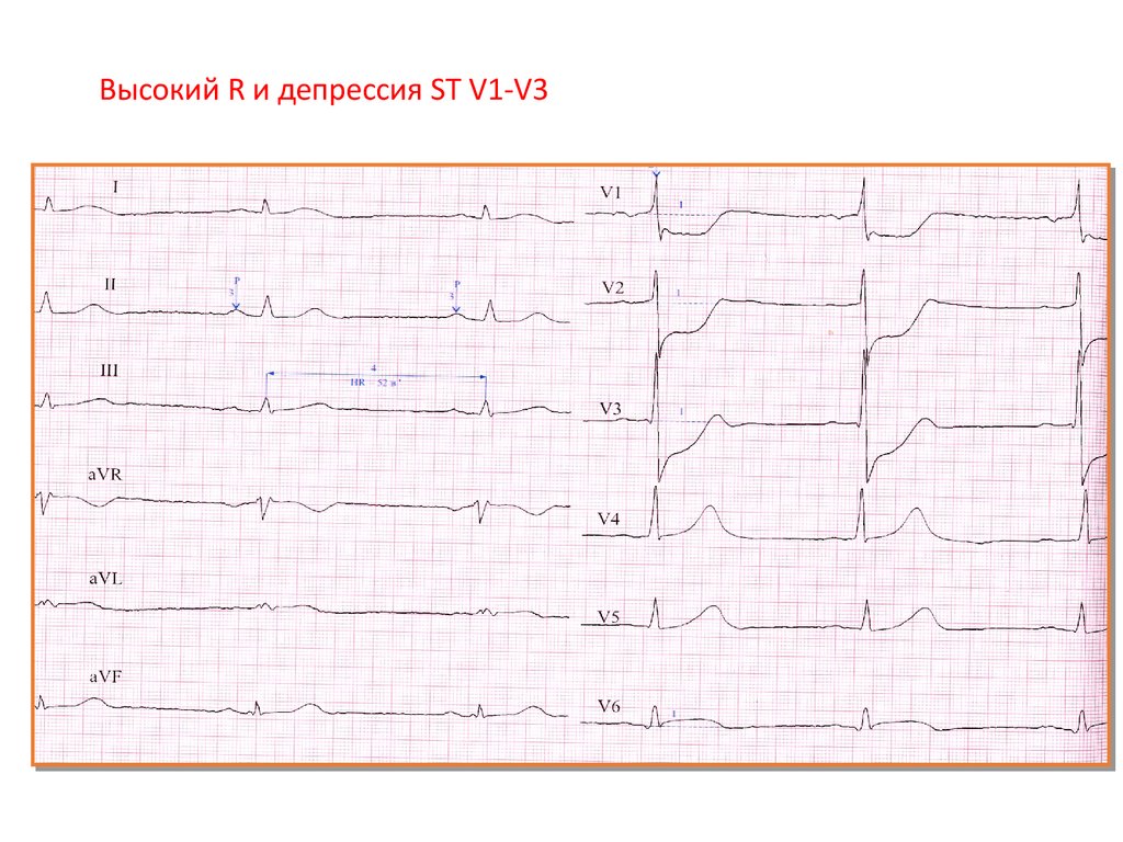 Высокий R и депрессия ST V1-V379.