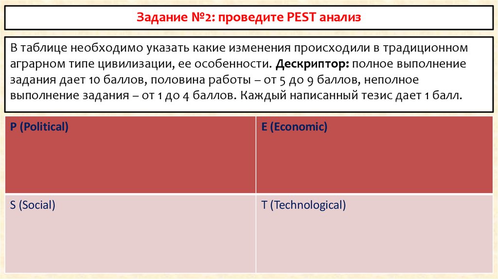 Задание №3: формула PETTНеобходимо анализировать развитие аграрного типа цивилизации использyя формyлy