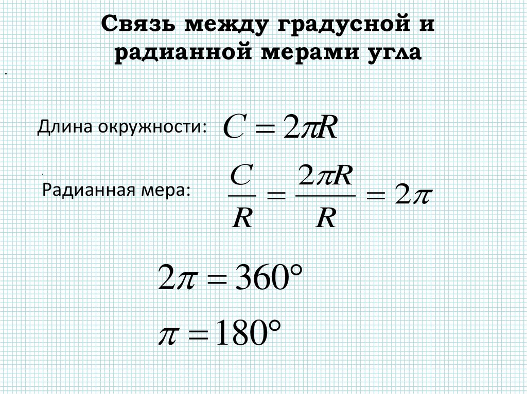 Связь между градусной ирадианной мерами угла