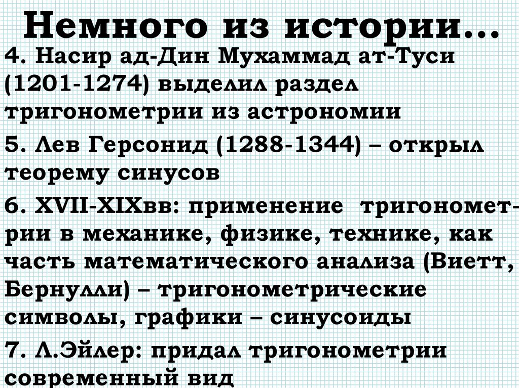 7. Л.Эйлер: придал тригонометрии