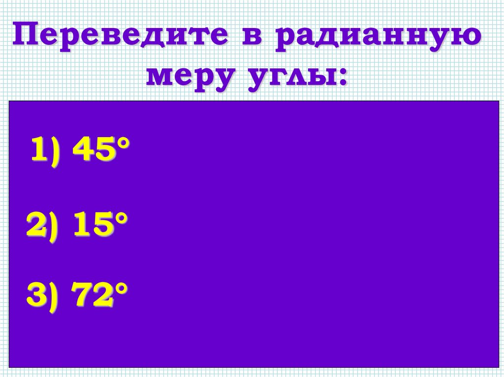 Переведите в радианнуюмеру углы: