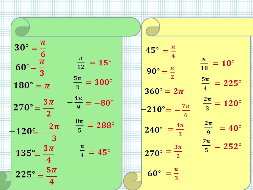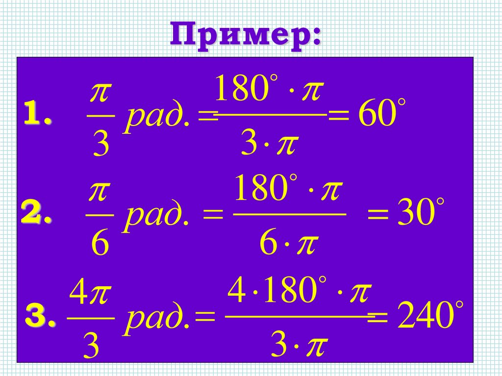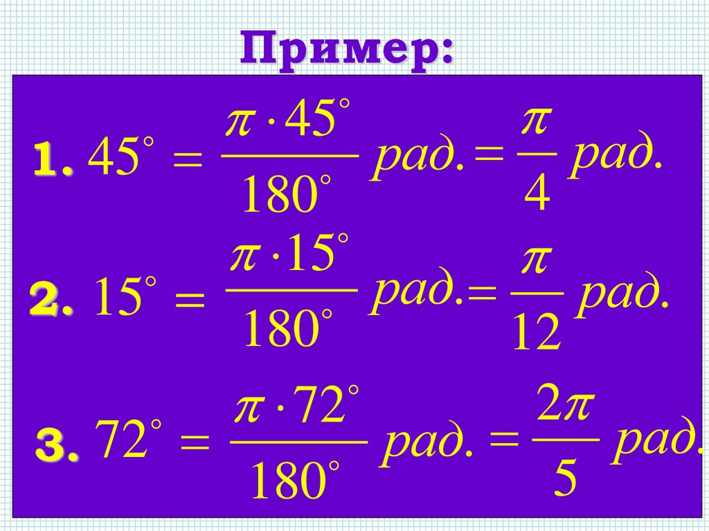 Перевод из градусной меры врадианную: