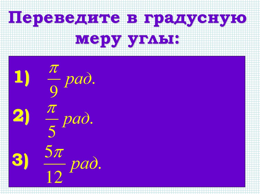 Переведите в градуснуюмеру углы: