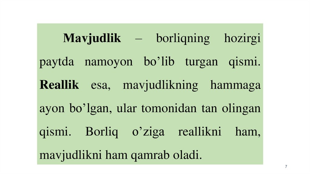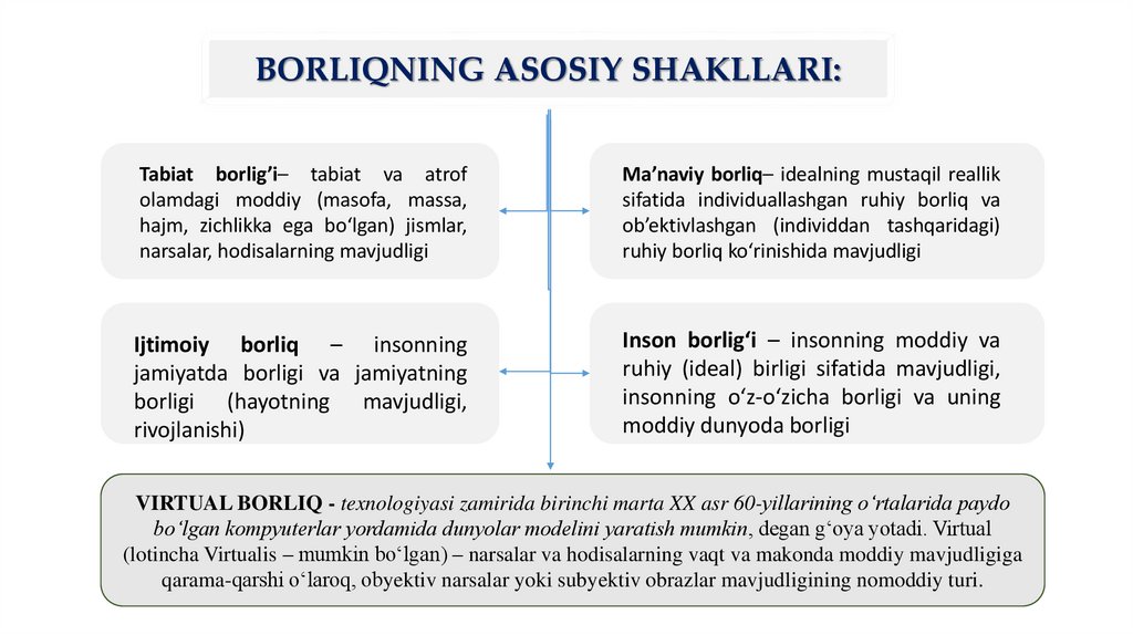 1. Borliq tushunchasiningmohiyatiga oid falsafiy va