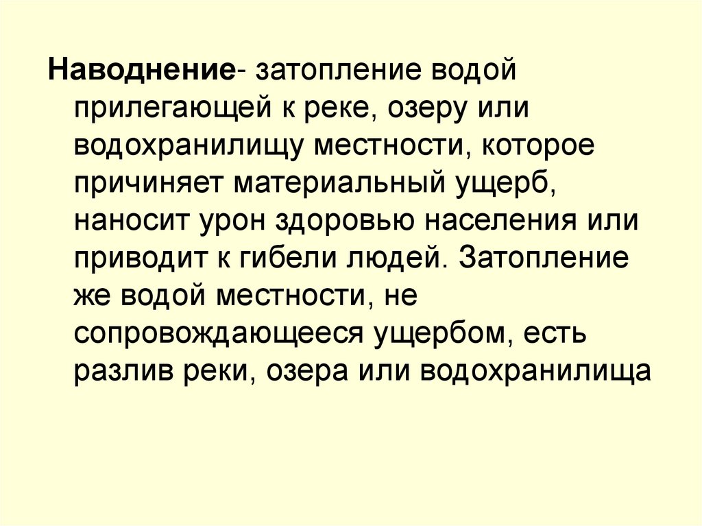 Наводнение- затопление водойприлегающей к реке, озеру или