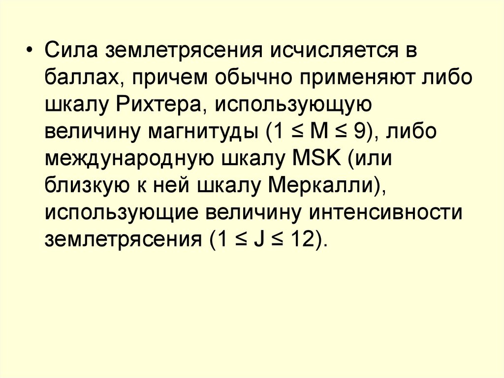 • Магнитуда землетрясения является меройобщего количества энергии, излучаемой при