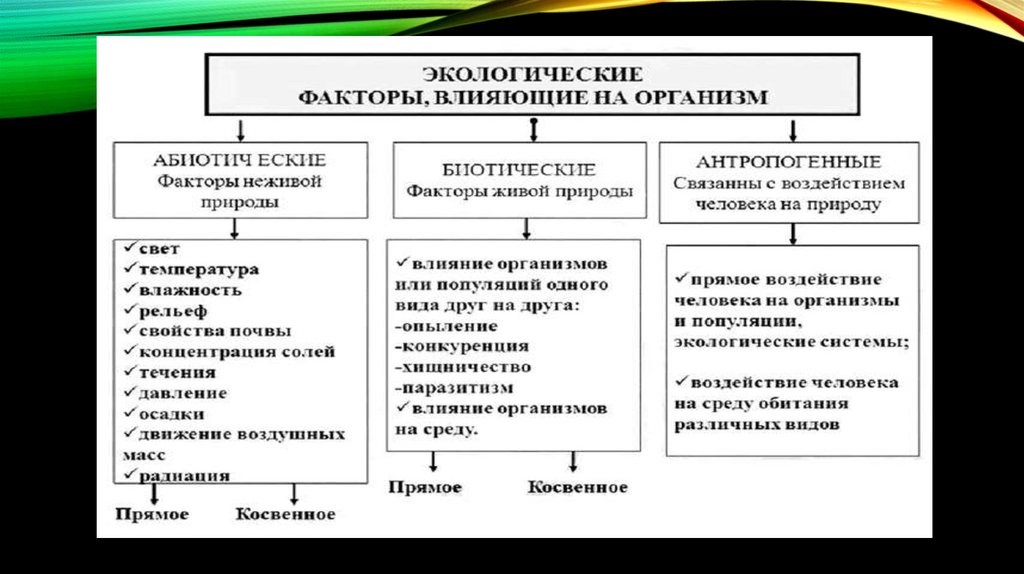 • Экологический фактор – любой элемент окруж. среды, способный