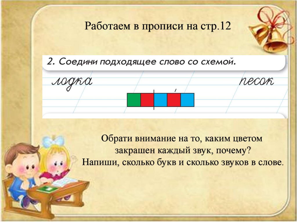 Работаем в прописи на стр.12Обрати внимание на то, каким цветом