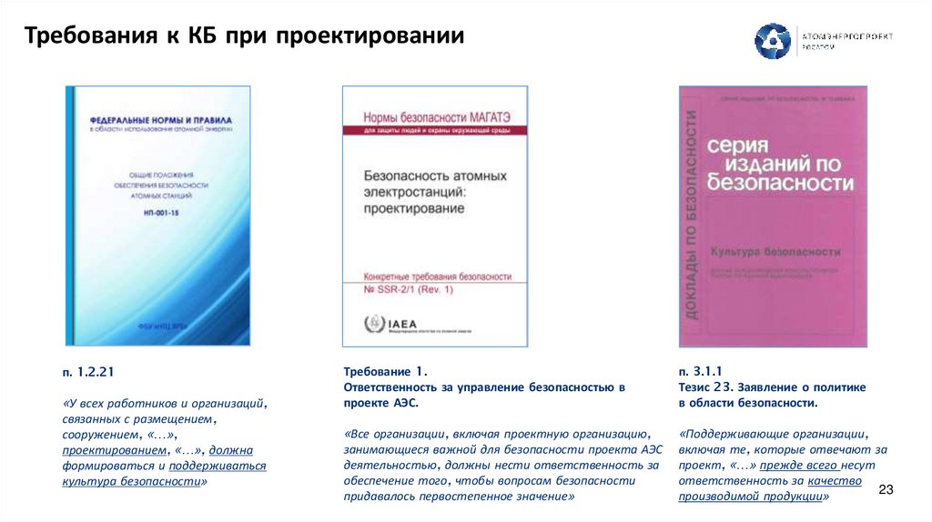 Документы РФ и атомной отрасли в области КБОбщие положения обеспечения