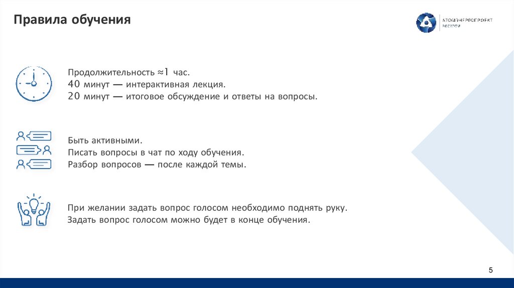 Правила обученияПродолжительность ≈1 час.