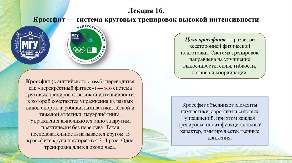 Лекция 16.Кроссфит — система круговых тренировок высокой интенсивности