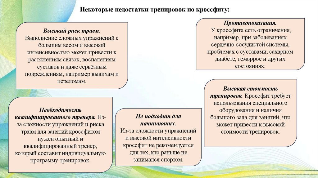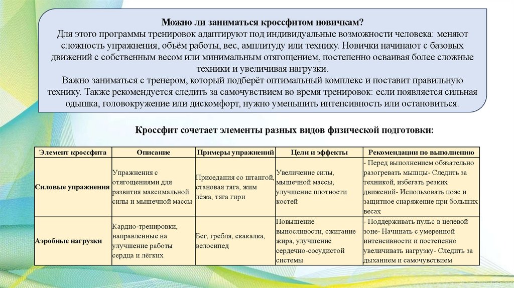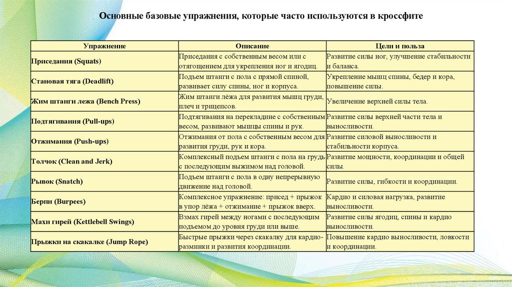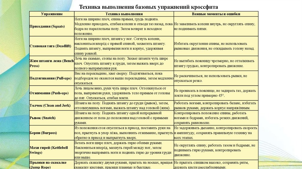 отдачей, соблюдая технику: гребля, прыжки, жим - Заменять сложные упражнения на более простые