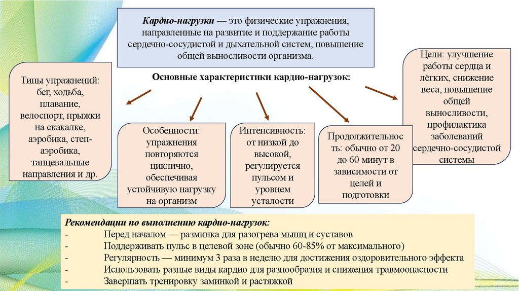 Кардио-нагрузки — это физические упражнения,направленные на развитие и поддержание работы