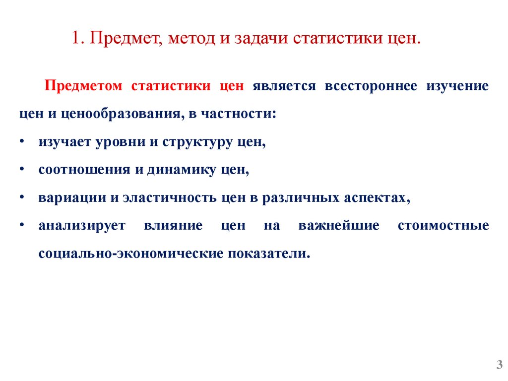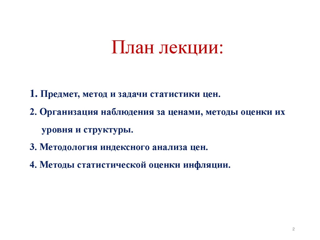 План лекции:1. Предмет, метод и задачи статистики цен.