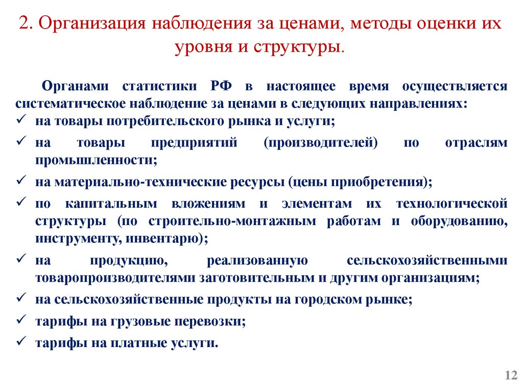 2. Организация наблюдения за ценами, методы оценки их