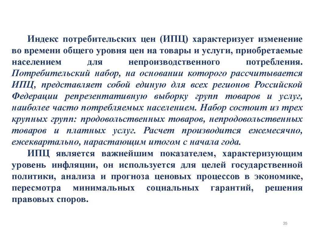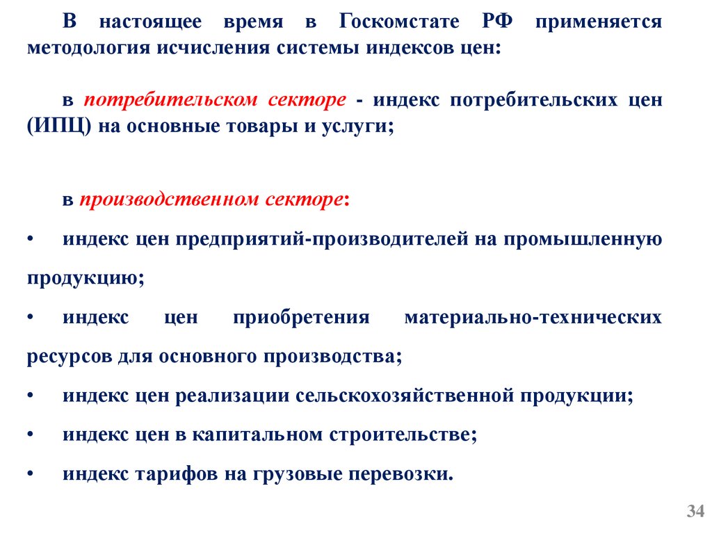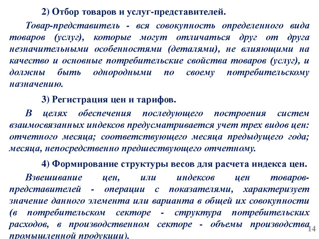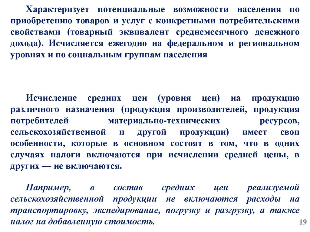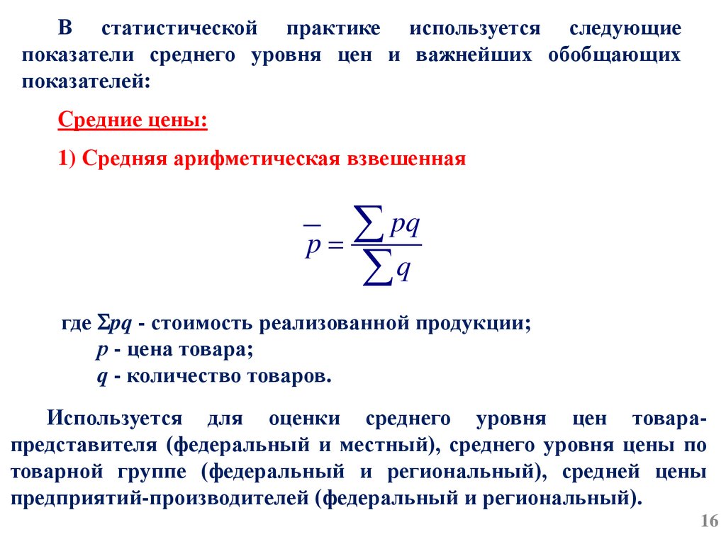 Используется для оценки среднего уровня цен товарапредставителя (федеральный и местный), среднего уровня цены по