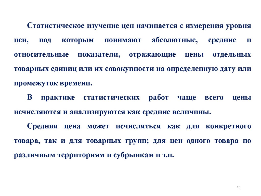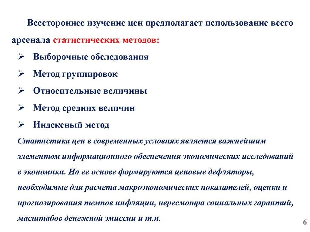 Всестороннее изучение цен предполагает использование всегоарсенала статистических методов: