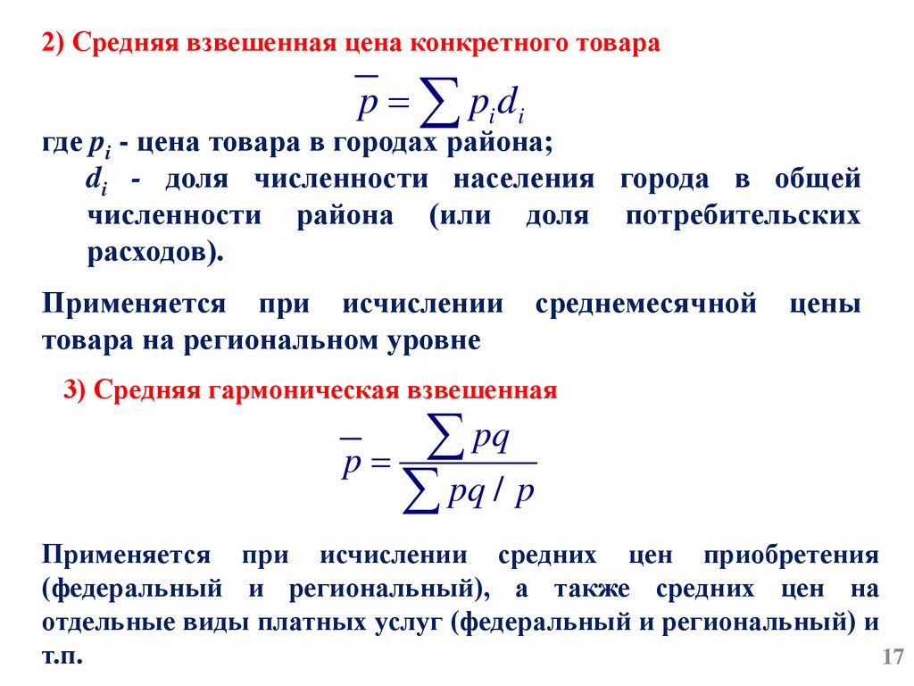 2) Средняя взвешенная цена конкретного товараp pi di