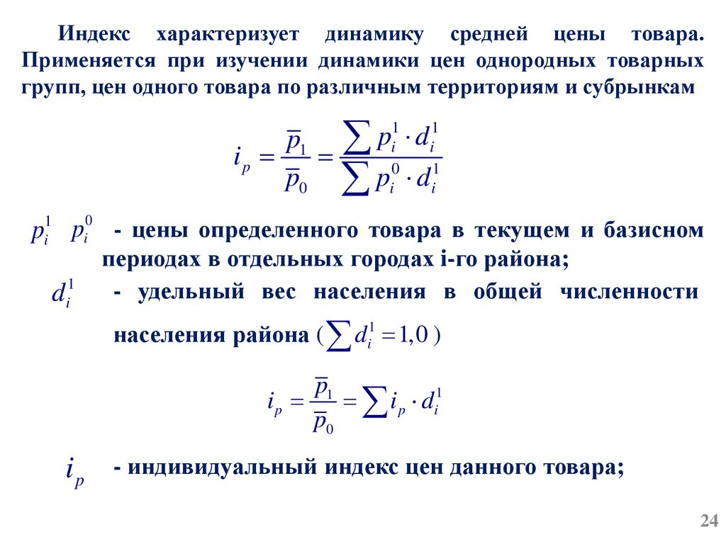 1) Индивидуальный индекс цены, характеризует динамику цены