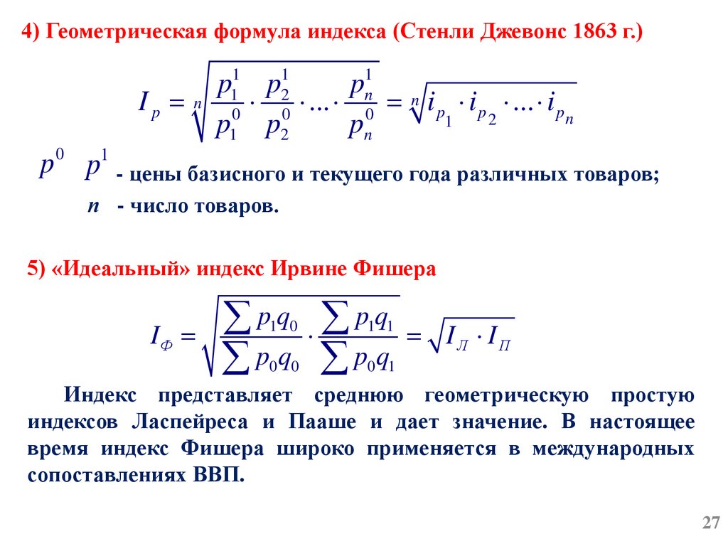 по формуле среднейгеометрической