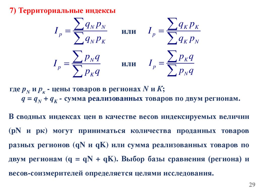 Для однородных товаров (услуг) могут быть вычисленыпростейшие агрегатные индексы (субиндексы) по различным