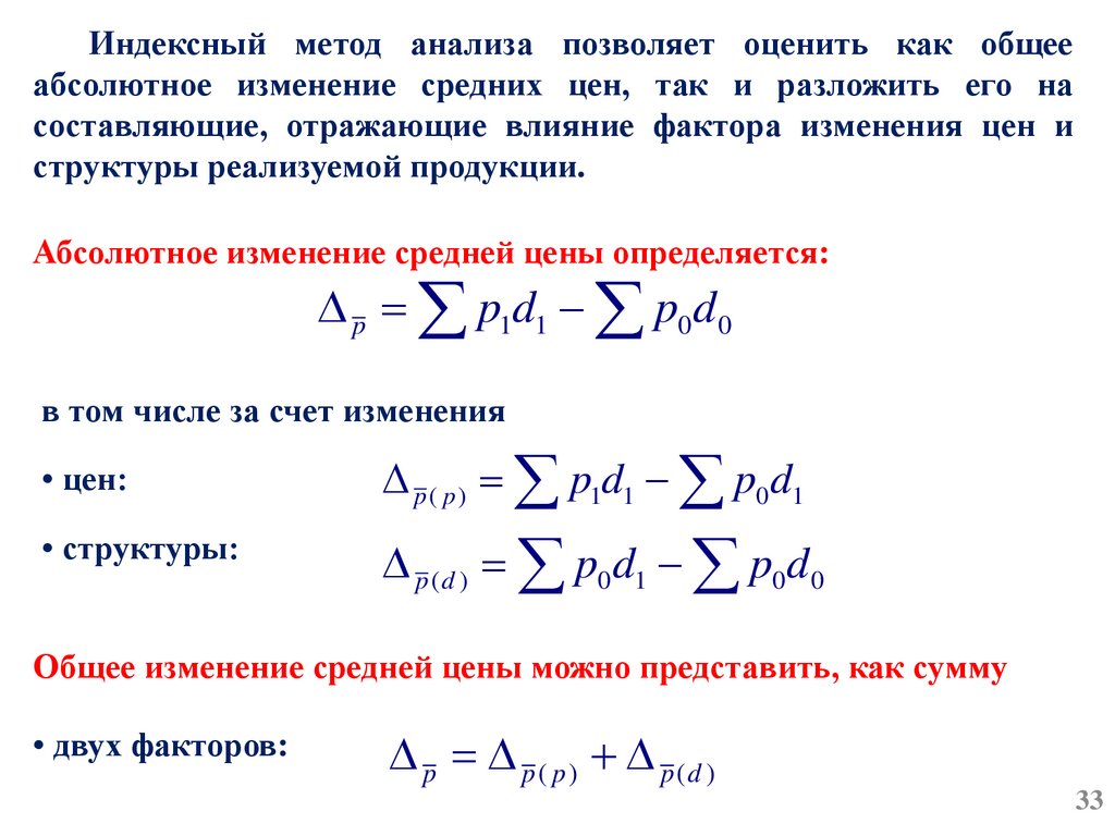 3. Методология индексного анализа цен.Индексный метод является одним из основных методом