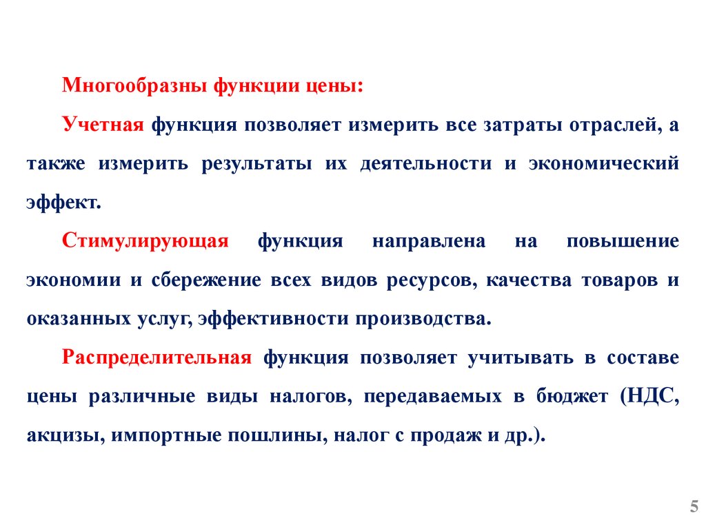 Многообразны функции цены:Учетная функция позволяет измерить все затраты отраслей, а